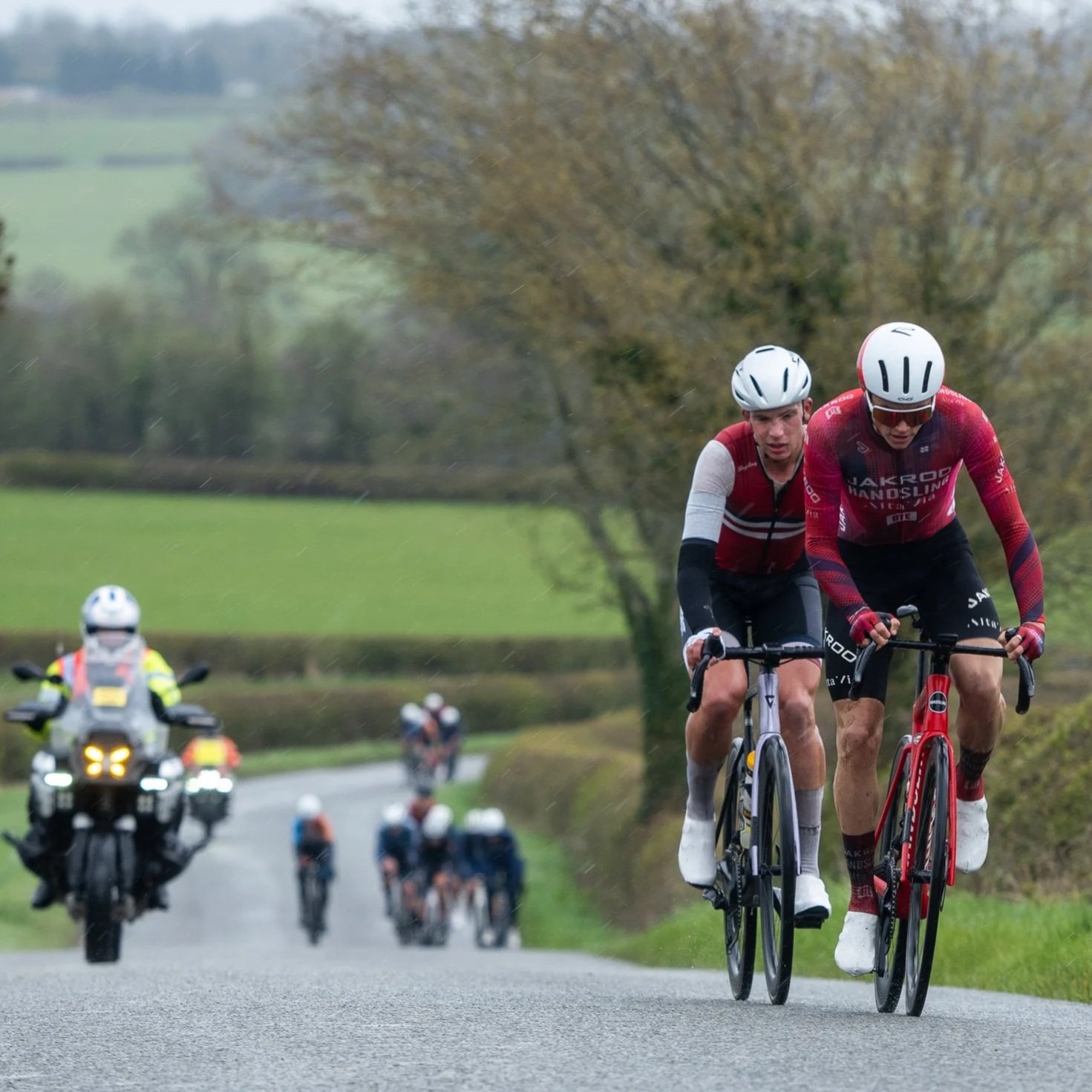 The following day, our U23 squad took on the PB Performance Espoirs Road Race in Leicestershire. Persistent rain and strong winds made the 150 km race especially gruelling. A 13‑rider break escaped early; our riders switched from pacing duties to launching across the gap as the lead group swelled, and the peloton eventually reeled in the escapees. Former junior national champion Oliver Dawson proved the pick of our U23s, following the late attacks and sprinting to a hard‑fought fourth place. The rest of the squad contributed to the chase, gaining valuable experience that will serve them well in upcoming races.